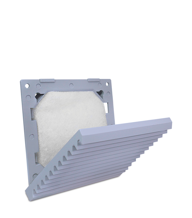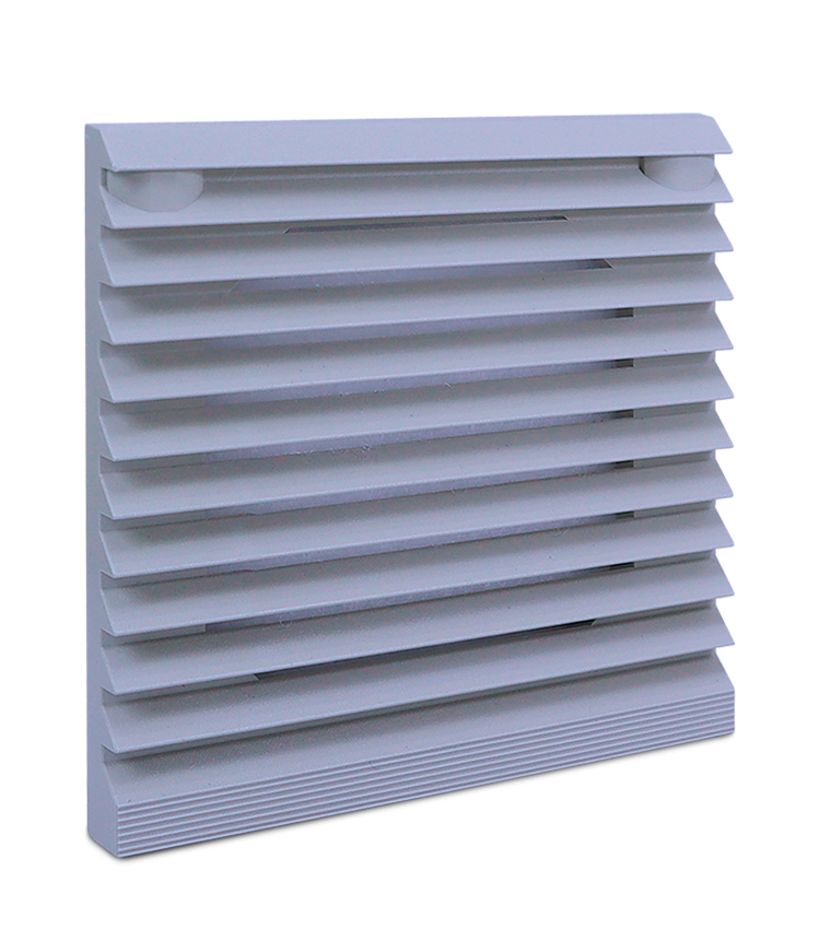 Veneziana em plástico ABS com grau de proteção IP54, própria para ser utilizada com o ventilador axial SIBRATEC. Possui várias possibilidades de fixação conforme a necessidade do cliente. Possui filtro estofado que evita a sucção de poeiras e outros corpos estranhos para dentro do aparelho em que ela está sendo utilizada.